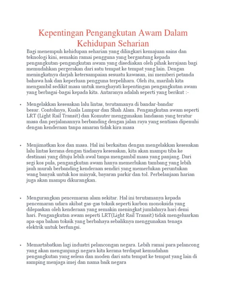 Contoh karangan spm masalah pengangkutan awam dan cara mengatasi pengangkutan awam penting dalam kehidupan manusia. Penapis asap /catalytic converter ~ bagi mengurangkan pembebasan asap hitam oleh pengangkutan awam seperti bas dan teksi yang menggunakan . Doc masalah sistem pengangkutan awam di negara kita dan cara mengatasinya ellis suraya academia edu. Contoh masalah sistem pengangkutan awam di malaysia iaitu jalan raya darat, takrifan, definisi dan senarai faktor serta cadangan bagi kerja.